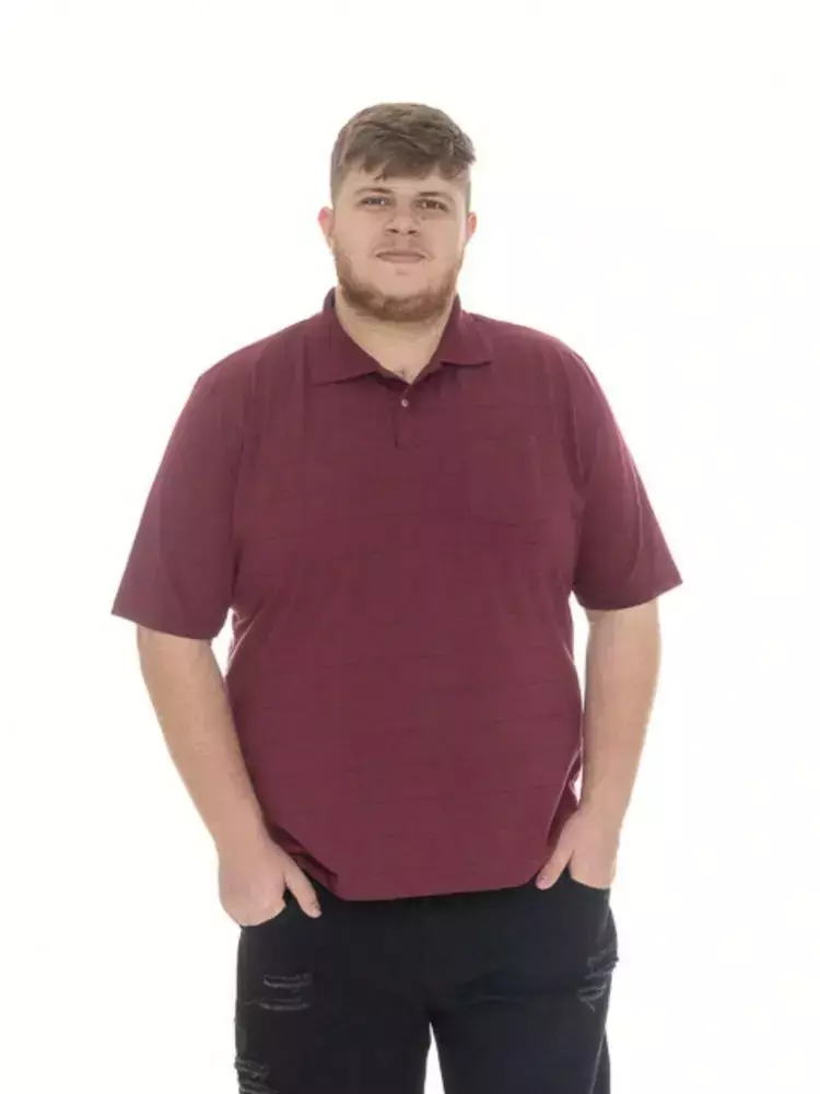 Camisa Polo Plus Size Listrada Vinho com Bolso