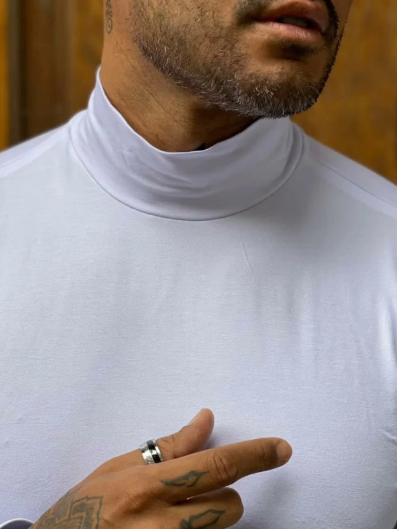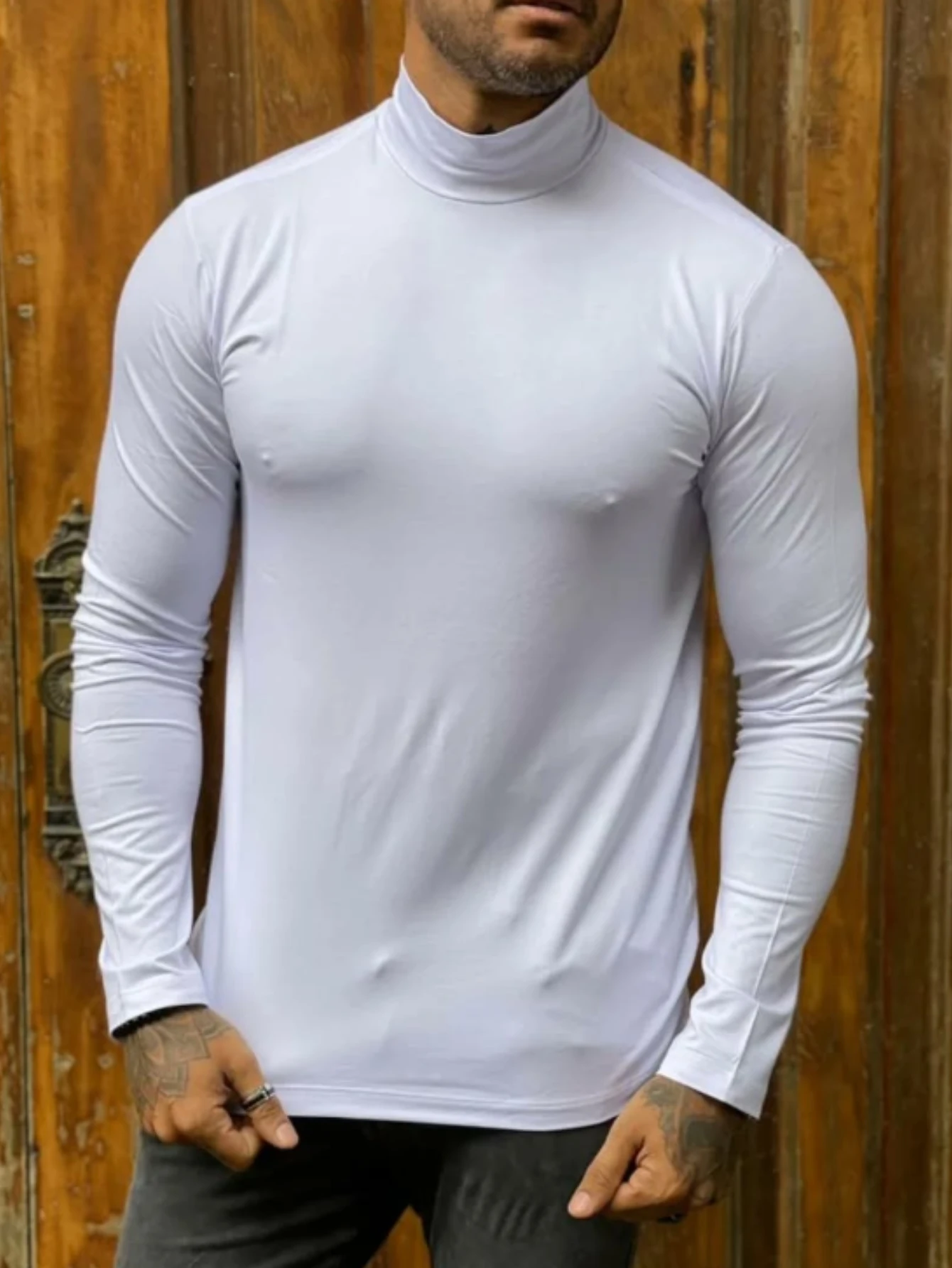 Elegância e conforto em uma peça essencial! Nossa **Camiseta Manga Longa Gola Alta** tem um **corte slim** que valoriza a silhueta, proporcionando um caimento sofisticado e ajustado ao corpo. Confeccionada em **Malha Fria**, um tecido leve, macio e de toque suave, garante frescor e respirabilidade para o dia a dia.