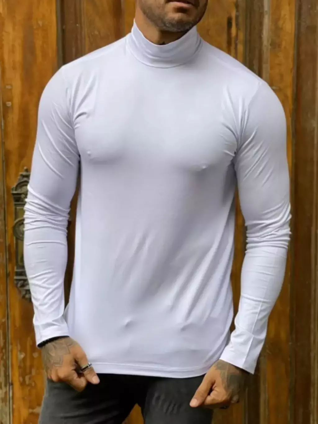 Camiseta Manga Longa Gola Alta Slim Malha Fria