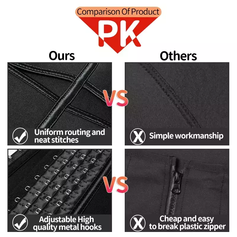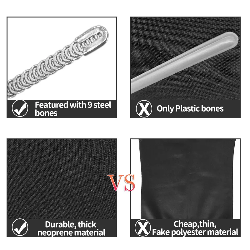 9 peças de ossos de aço de 25cm são cobertas na frente e atrás para suporte adicional ajuste perfeito para a cintura evitar ondulação, escorregando