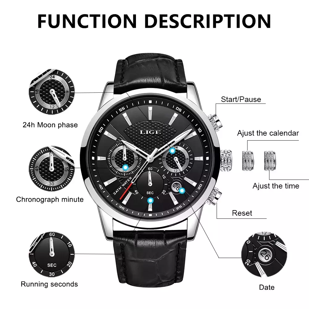 Cada relógio LIGE é produzido com materiais da mais alta qualidade, garantindo durabilidade e precisão no funcionamento. Seu mecanismo confiável mantém a hora com exatidão, enquanto o acabamento impecável torna cada peça única. Além disso, o conforto no uso é incomparável, pois a pulseira se ajusta perfeitamente ao pulso, proporcionando uma sensação agradável durante todo o dia.